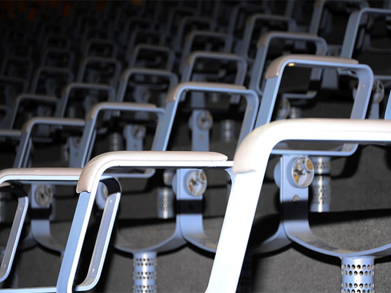 Nach vielen erfolgreichen Jahren des Theaterbetriebs erhielt der Zuschauersaal neue Bodenbeläge und eine komplette Überarbeitung der Bestuhlung. Dafür wurden die Sessel komplett demontiert, die Gestelle und Kippmechaniken wurden in alle Einzelteile zerlegt, gereinigt und erhielten neue Oberflächen. Parallel wurden die alten Bodenbeläge im Saal entfernt. Die darunter liegenden Böden wurden geschliffen, ggf. ausgetauscht und neue Auslegeware verlegt. Die Sitz- und Rückenpolster der Zuschauersessel wurden komplett erneuert.